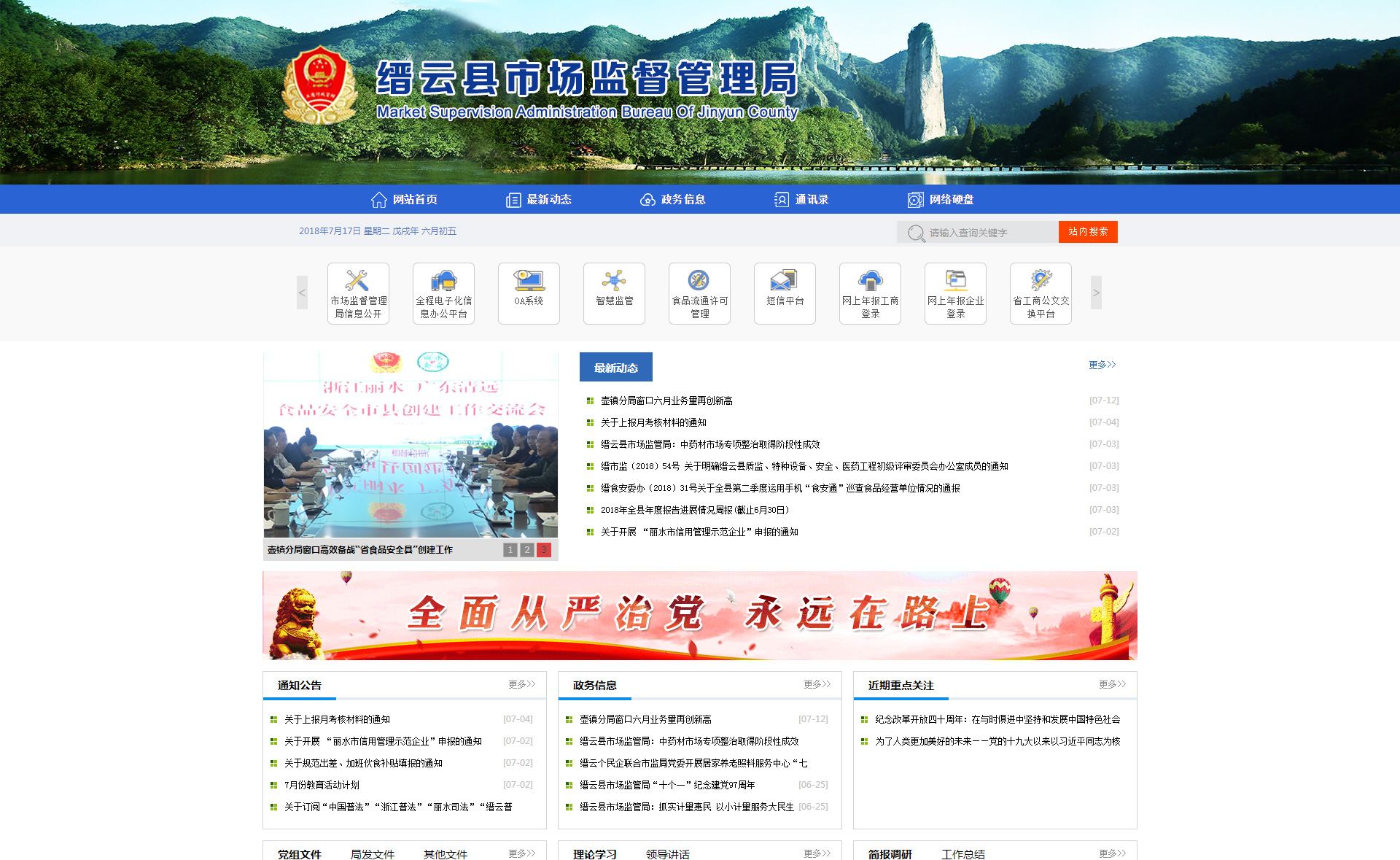 缙雲縣市場(chǎng)監督管理(lǐ)局内網網站改版上(shàng)線!