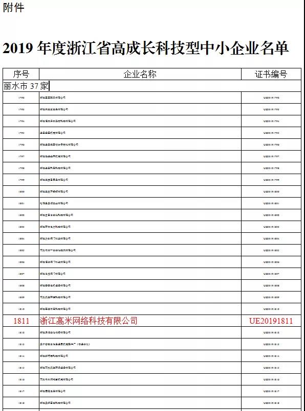 我司于2019年被評定爲浙江省高(gāo)成長科技型中小(xiǎo)企業(yè):